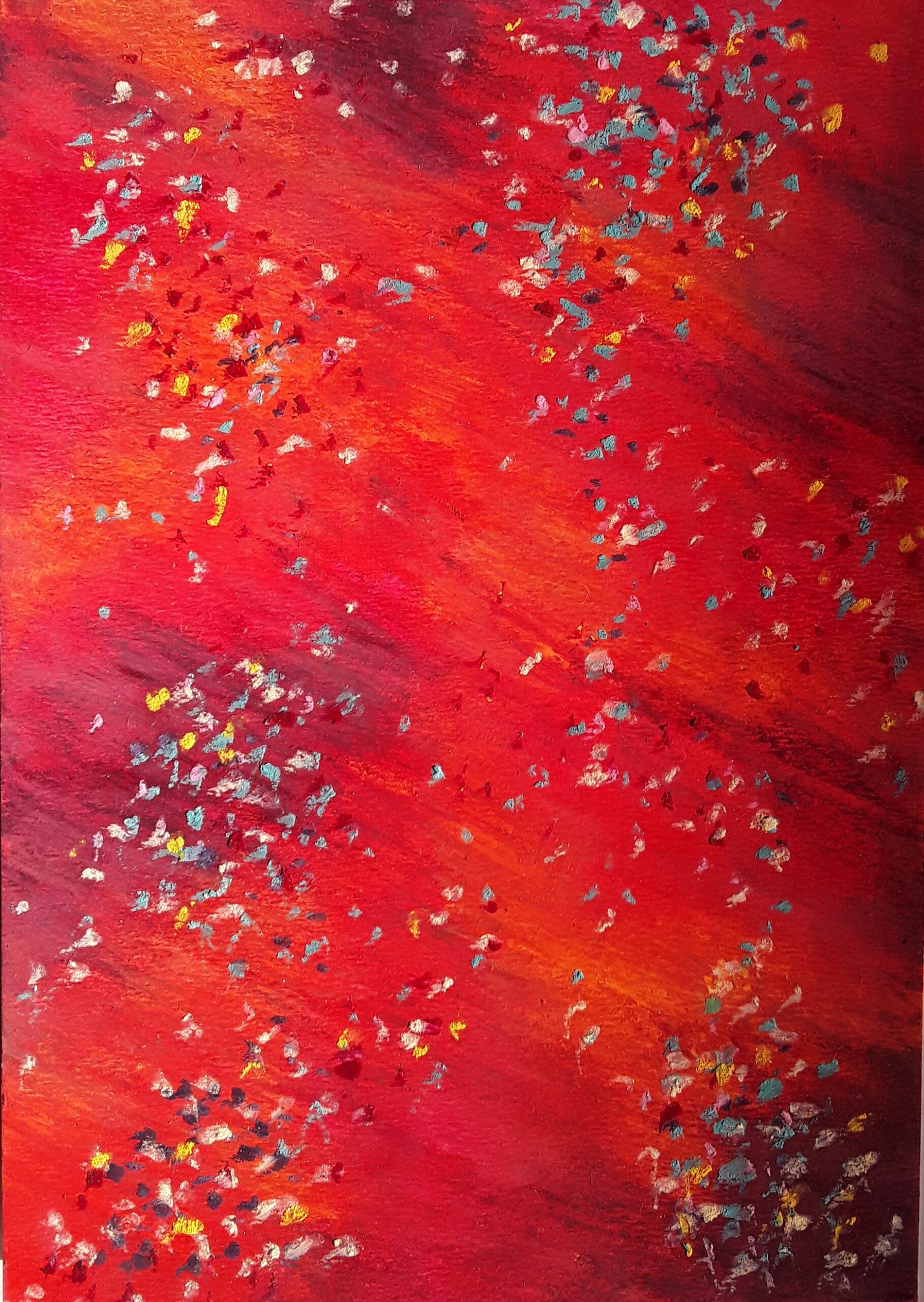 «Los colores y la textura de la pintura me permiten expresar mis emociones con espontaneidad en composiciones abstractas, mis preferidas…»